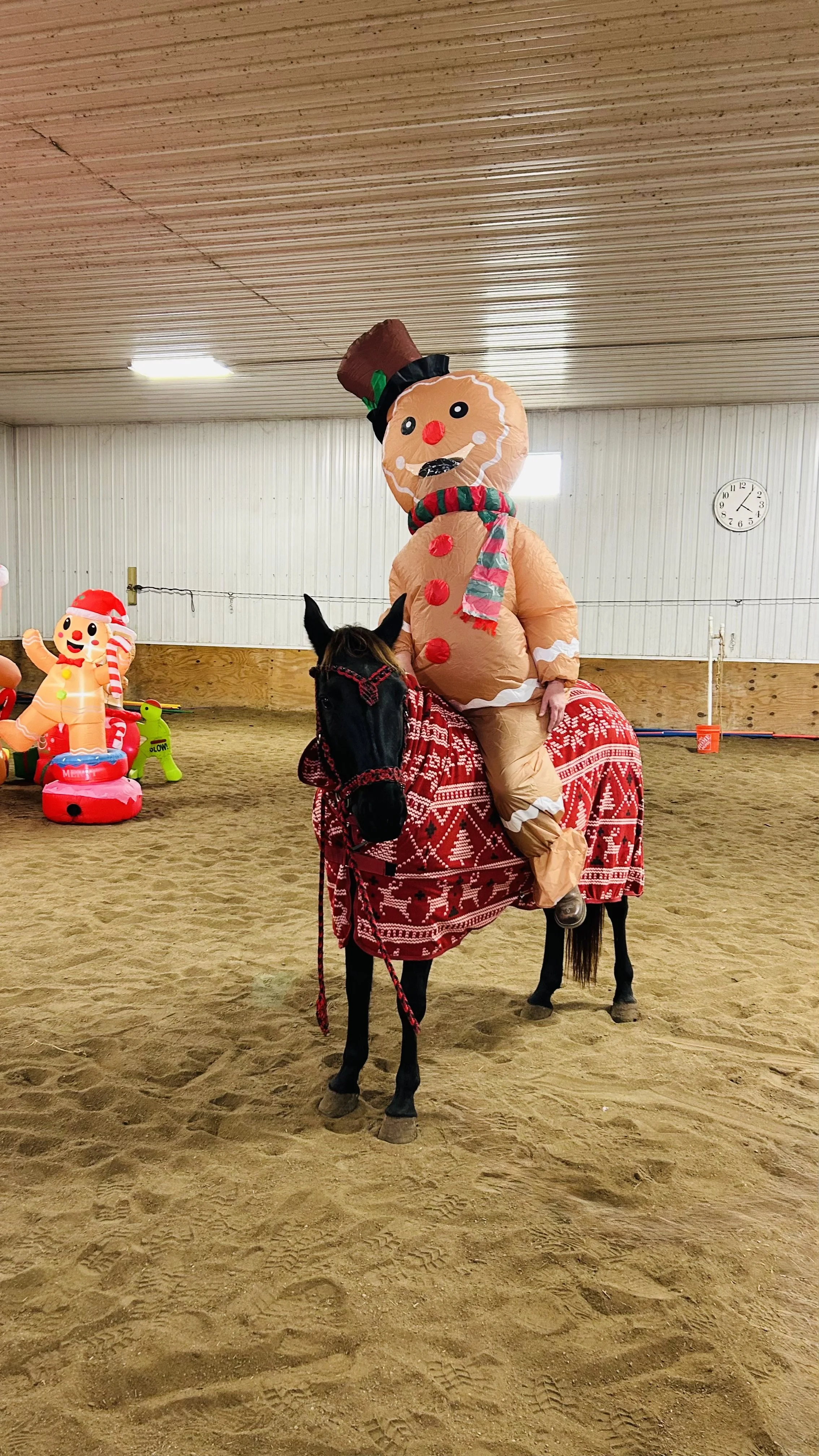Christmas Time obstacles with your horses, open 3p-7p starting Nov 15,16, 22, 23, and 28,29, 2025. 15$/horse. Cowboy curtain, teeter totter, gate, bells